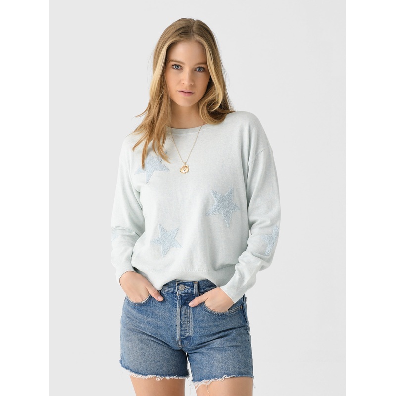 DESCRIPTION:This lightweight crew sweater is made from soft cotton and features tonal star appliqu details.FEATURES:Crew NecklineDropped ShoulderStar Appliqus Ribbed Cuffs and HemKnit Fabrication100% CottonClassic FitModel is wearing size Small sweater.Mod