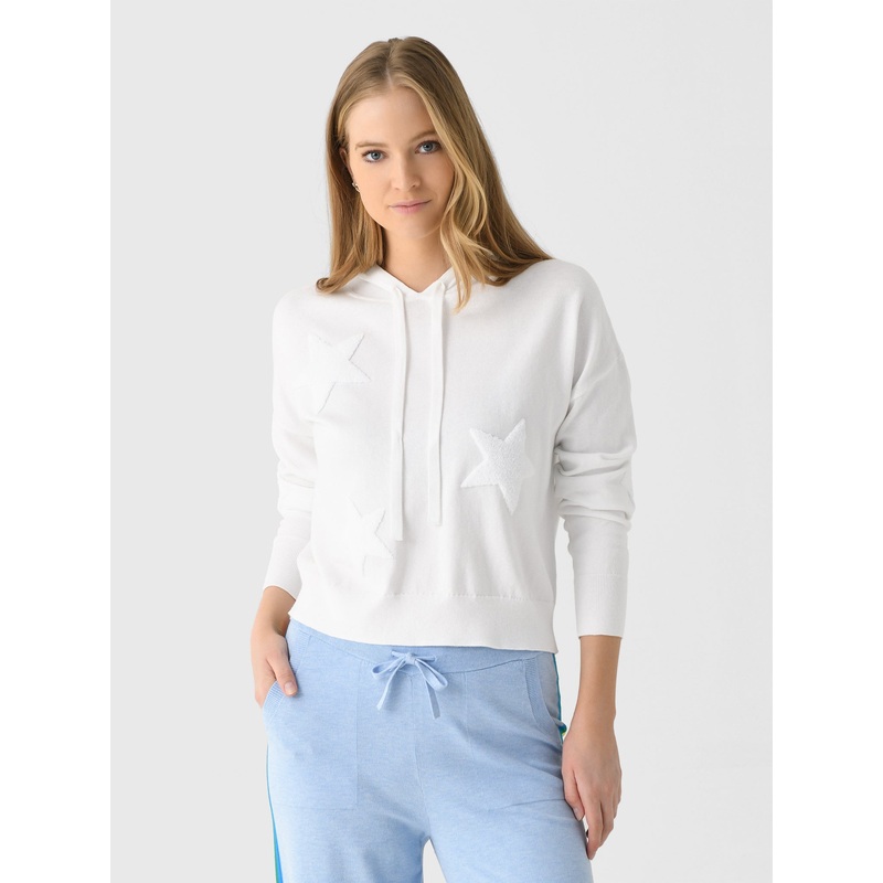 This casual sweater is made from soft cotton and features tonal star appliqus and a drawstring hood.