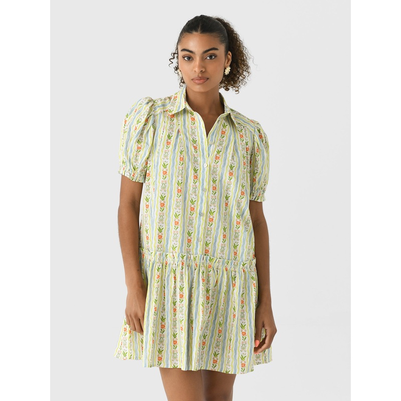 DESCRIPTION:This charming shirtdress is a celebration of vibrant patterns and playful style. A gathered seam below the natural waist creates a full skirt, ensuring comfort and effortless elegance for any warm-weather adventure.FEATURES:Point CollarPuff Sle