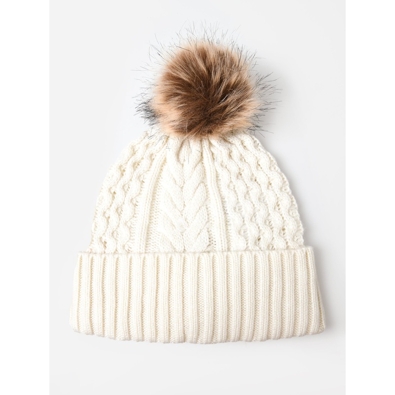 DESCRIPTION:Cable knit beanie with a pom on top.FEATURES:Cable Knit BeanieRibbed Turnback CuffPom on TopCable Knit FabricationClassic Fit