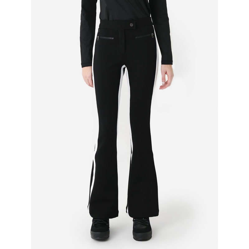 Water-resistant ski pant with contrast side stripes and a flared silhouette.