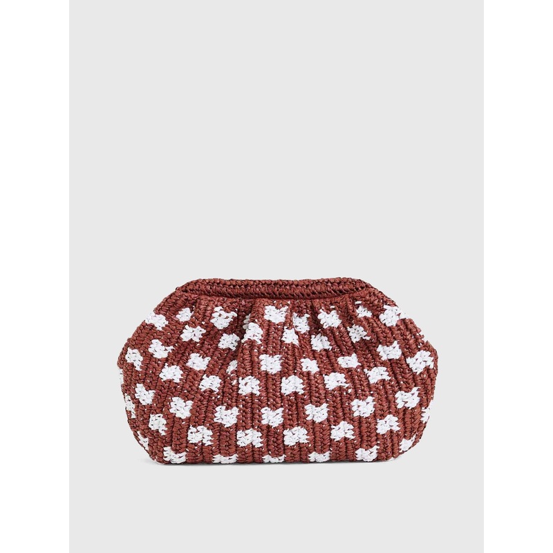 DESCRIPTION:This stunning raffia-style clutch features a captivating brown and white combo design with a magnetic frame closure. Perfect for garden parties or sunset drinks, it effortlessly adds texture to any outfit.FEATURES:Frame ClosureInterior Zip Pock