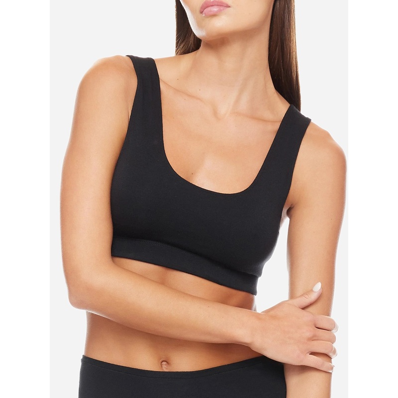 DESCRIPTION:A comfortable sports bra cut from soft and stretchy jersey fabric.FEATURES:Scoop Neckline & BackFixed StrapsBanded HemJersey Fabrication89% Modal, 11% LycraClassic Fit