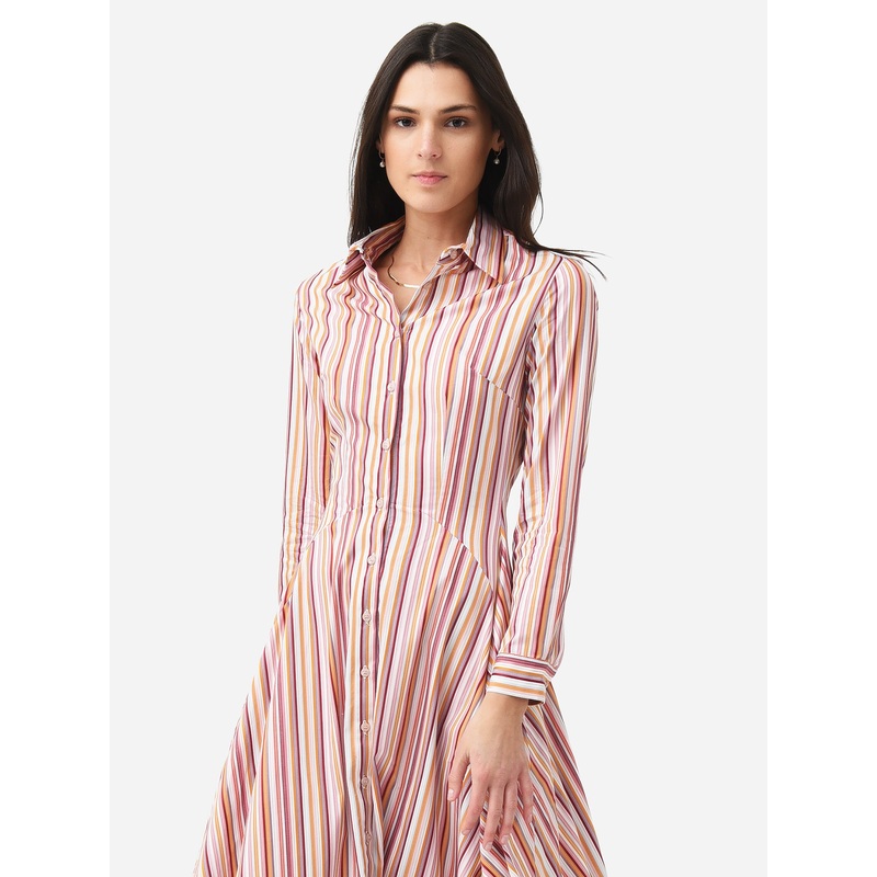 DESCRIPTION:Lightweight maxi shirt-style dress.FEATURES:Maxi DressSpread CollarLong Sleeve with Button CuffsButton-Down FrontAll-Over Stripe PrintLightweight Fabrication75% Cotton, 21% Polyester, 4% ElastaneClassic FitModel is wearing size Small dress.Mode