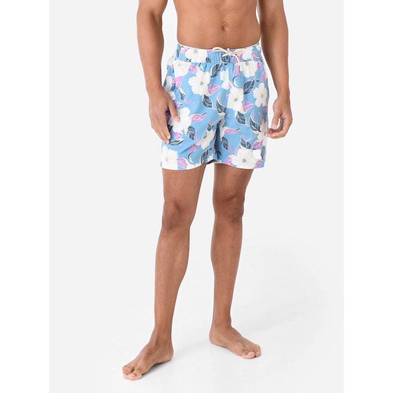 DESCRIPTION:Swim trunk made from eco materials with a vintage-inspired design.FEATURES:Swim TrunkElastic Waistband with DrawstringSide PocketsBack Zip PocketMesh LinerWrinkle-ResistantAll-Over Novelty PrintQuick-DryingInseam: 7 in.80% Recycled Polyester, 1
