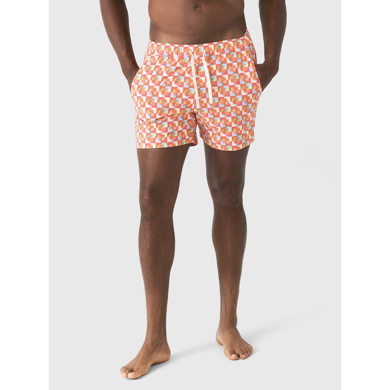 A colorful swim trunk with four-way stretch, a soft knit liner, and a water-repellent finish.