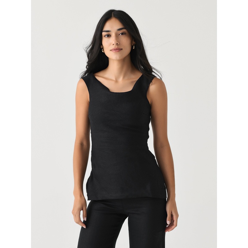 This feminine off-shoulder top is the epitome of effortless chic. Its bias-cut design and split hem flatter the figure, while the luxurious European Flax linen ensures comfort and style.