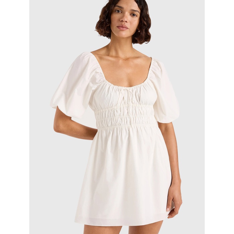 DESCRIPTION:A flattering A-line mini dress made from lightweight cotton with voluminous puff sleeves and a gathered bodice.FEATURES:Scoop NecklinePuff SleevesGathered WaistMini LengthA-Line Silhouette91% Cotton, 9% ElastaneClassic Fit