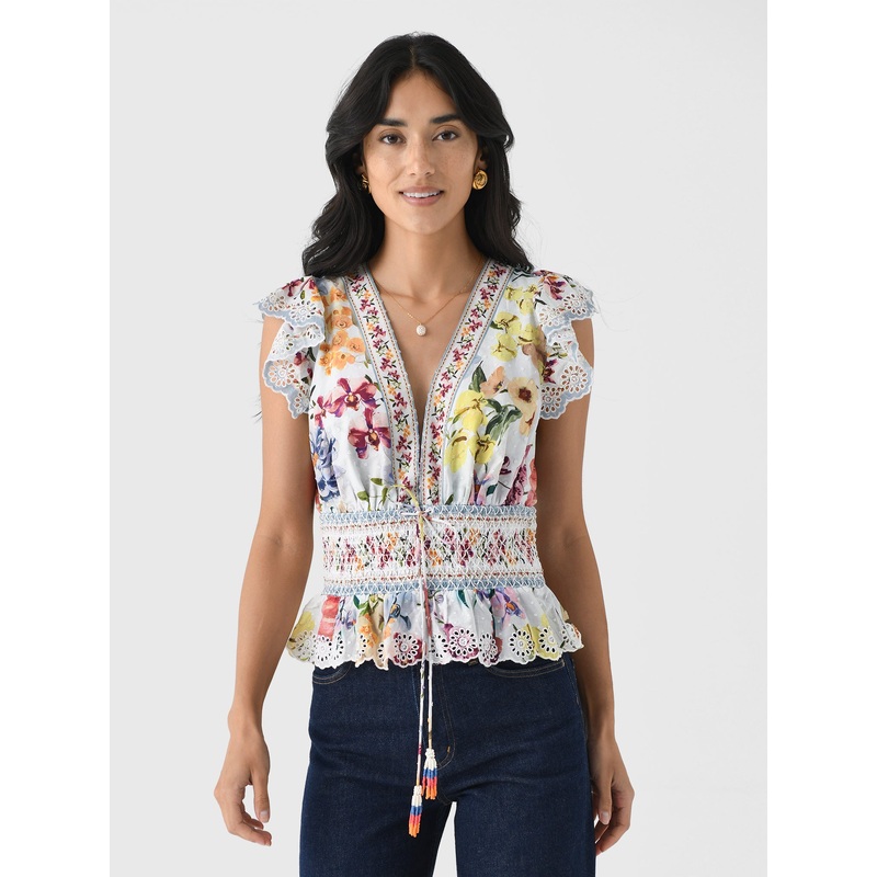 Farm Rio Women’s Greek Garden Smocked Blouse
