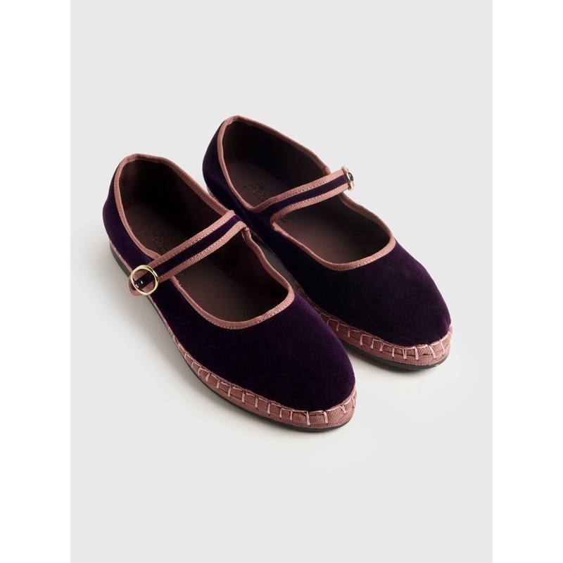A lightweight Mary Jane flat made from soft velvet with contrasting trims.