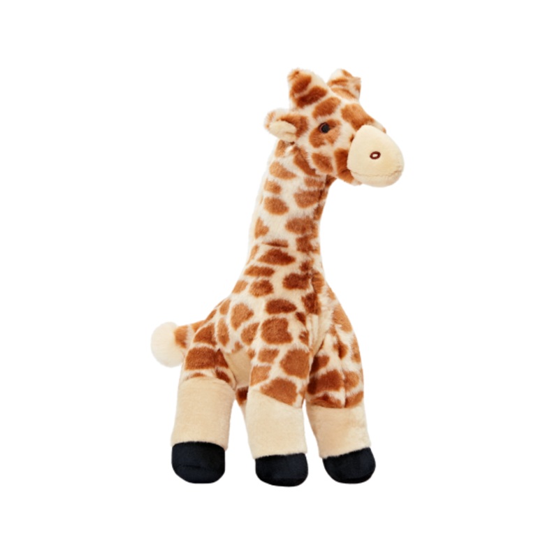 Nelly GiraffeGiraffes need only two hours of sleep per day - so Nelly is always ready to play! Nelly is a true beauty with her long graceful neck and lovely patterned plush. Shes great for dogs of any size, especially those who like to shake and toss their