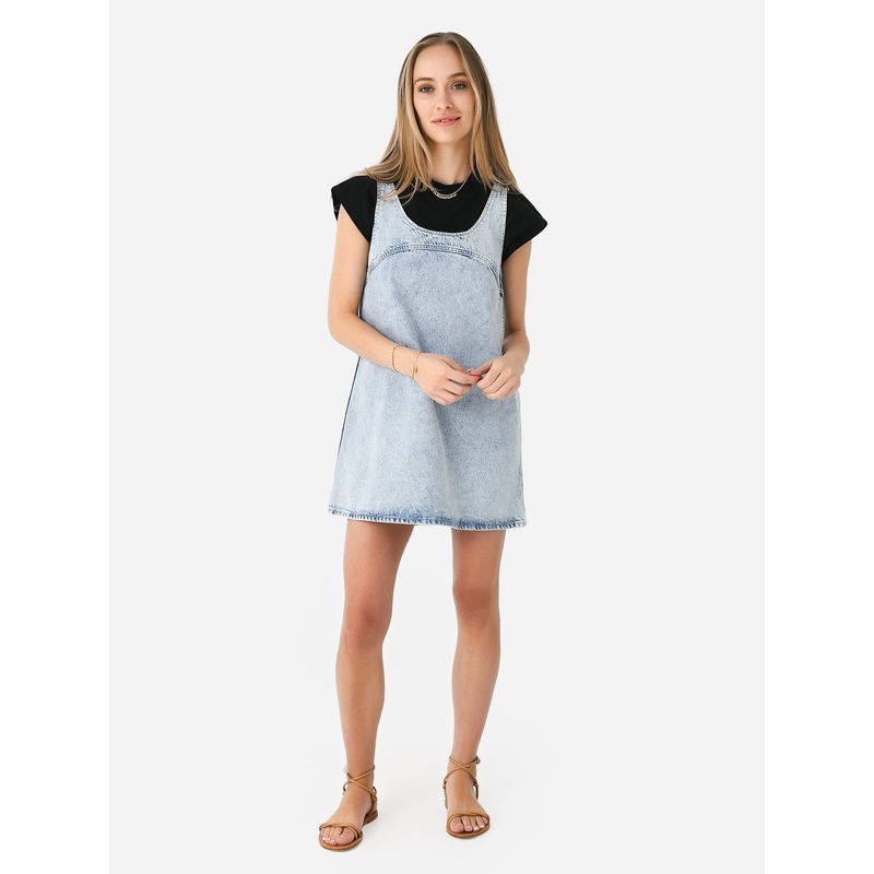 Non-stretch denim dress with a subtle flare hem.