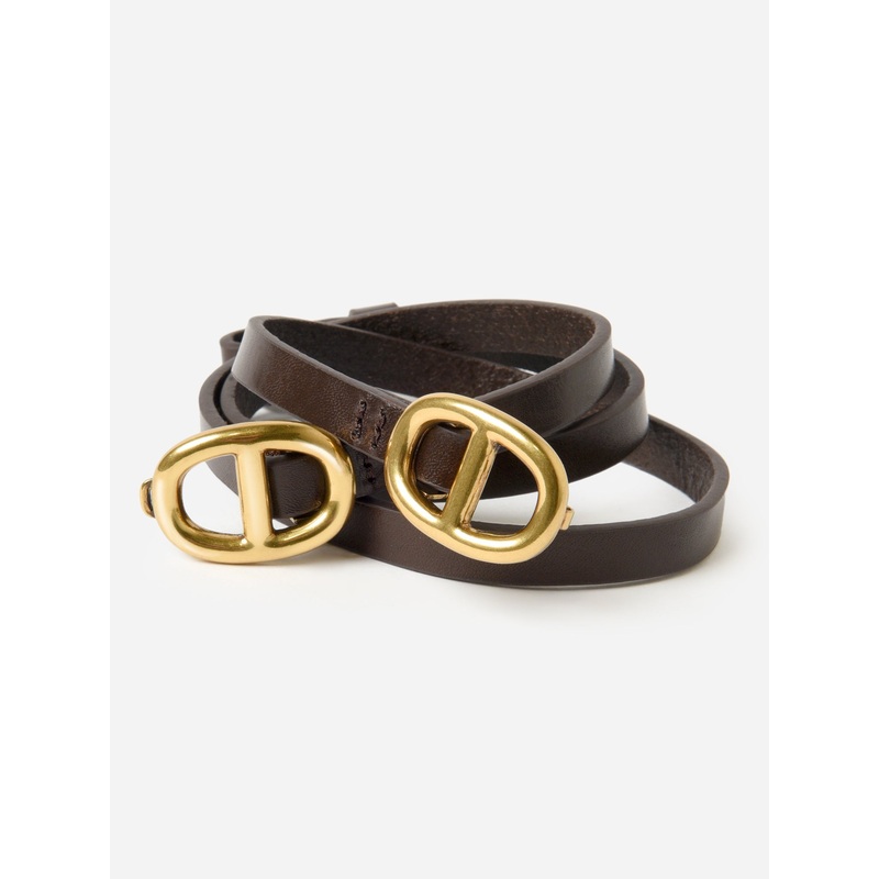 DESCRIPTION:A thin, leather belt with a gold-tone open-link design.FEATURES:Gold HardwareHook Closure100% LeatherLength: 34.5 in.Width: 0.5 in.
