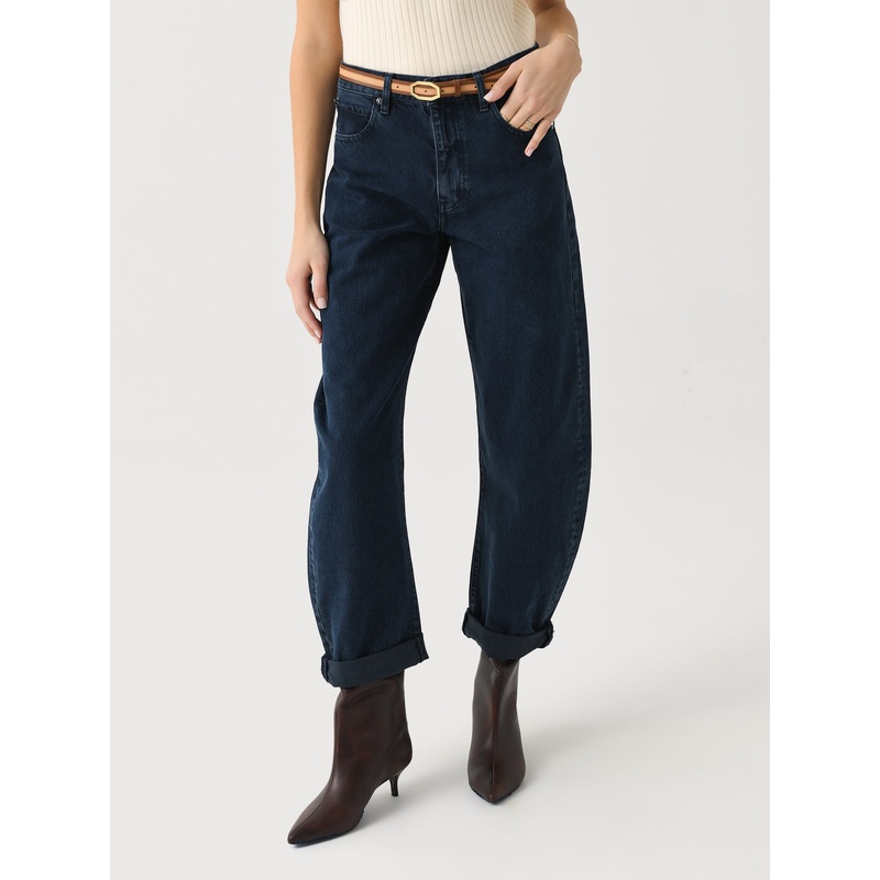 A flattering jean made from premium denim and finished with a barrel silhouette and a versatile design that can be cuffed or uncuffed.