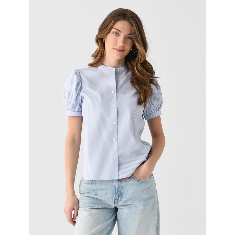 DESCRIPTION:This lightweight blouse is made from airy cotton and features gathered puff sleeves and a pinstripe design.FEATURES:Round NecklinePuff SleevesButton-Down FrontAll-Over Stripe Print100% CottonClassic FitModel is wearing size Small top.Model's Me