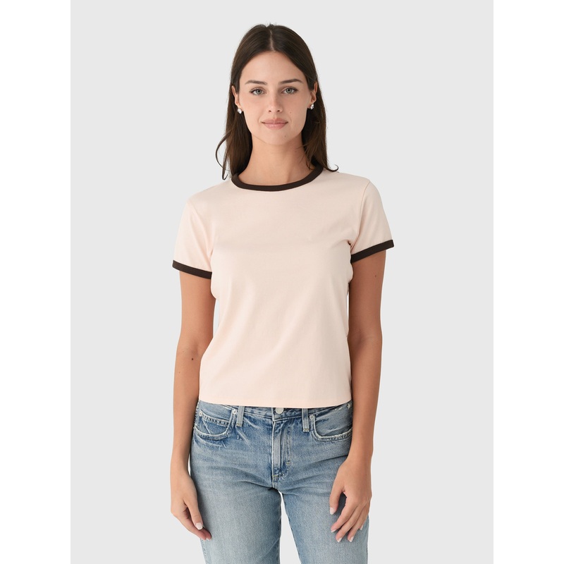 DESCRIPTION:A charming cotton baby tee featuring contrasting trim at the crewneck and sleeves. This soft, comfortable top offers a classic, retro-inspired look.FEATURES:Crew NecklineShort SleevesContrast Trims100% CottonSlim FitModel is wearing size Small