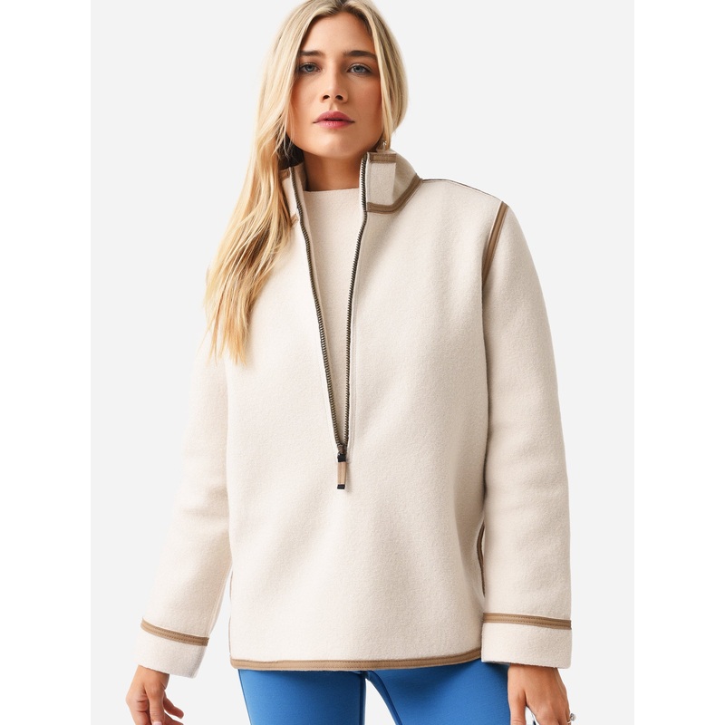 DESCRIPTION:Merino wool pullover with Alcantara leather seams.FEATURES:PulloverStand-Up CollarHalf-Zip ClosureLong SleeveStraight HemAlcantara Leather Seams100% Merino WoolRelaxed FitModel is wearing size 1 pullover.Model's Measurements: Height: 5'9" | Bus