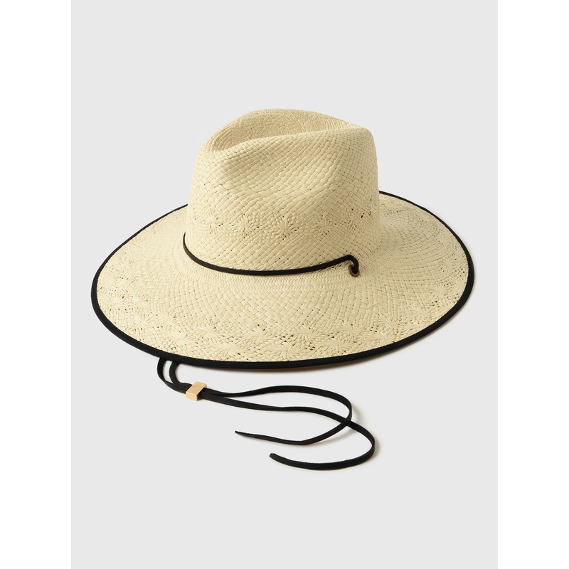 DESCRIPTION:Elevate your beach style with this lifeguard-inspired fedora hat. It boasts an intricate woven pattern, a wide brim for optimal sun protection, and a supple leather chin strap for a touch of sophistication.FEATURES:Pinched CrownContrast TrimAdj