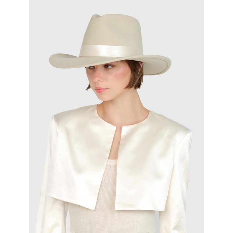 DESCRIPTION:This soft, packable felt hat features an upturned Western brim, accented by a smooth, coordinating metallic leather trim for effortless style.FEATURES:Pinched CrownTonal Metallic Leather BandCrown: 4.3 in.Brim: 3.5 in.Wool Felt Fabrication