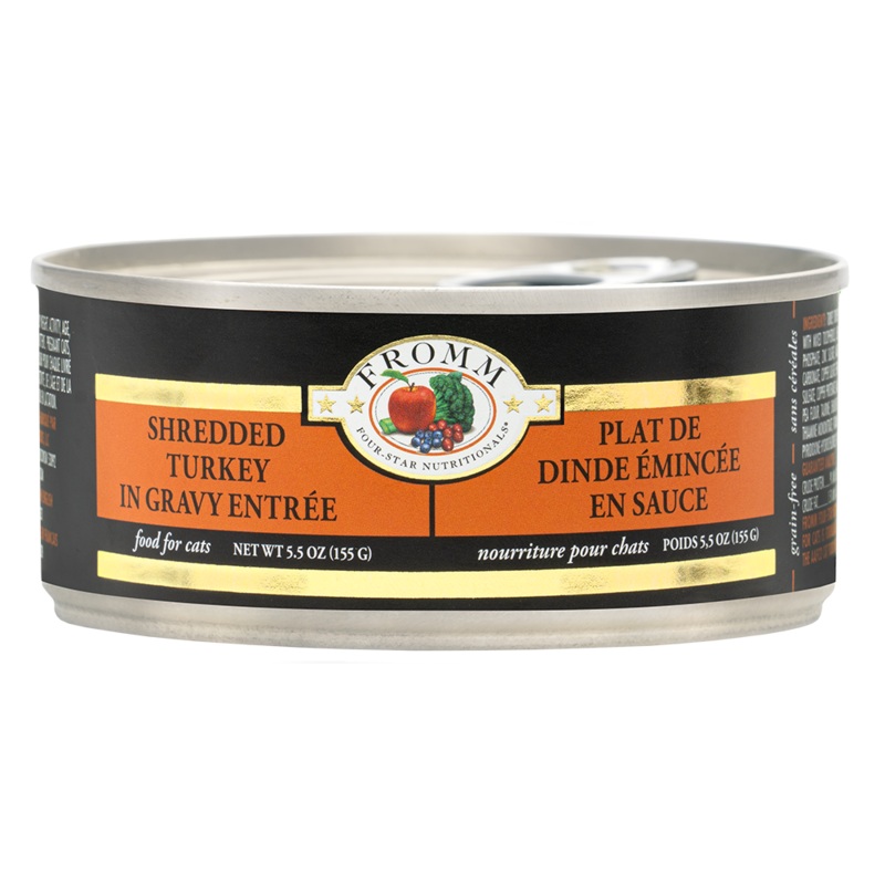Fromm Four-Star Nutritionals Shredded Turkey in Gravy Entre Food for Cats is formulated to meet the nutritional levels established by the AAFCO Cat Food Nutrient Profiles for all life stages.