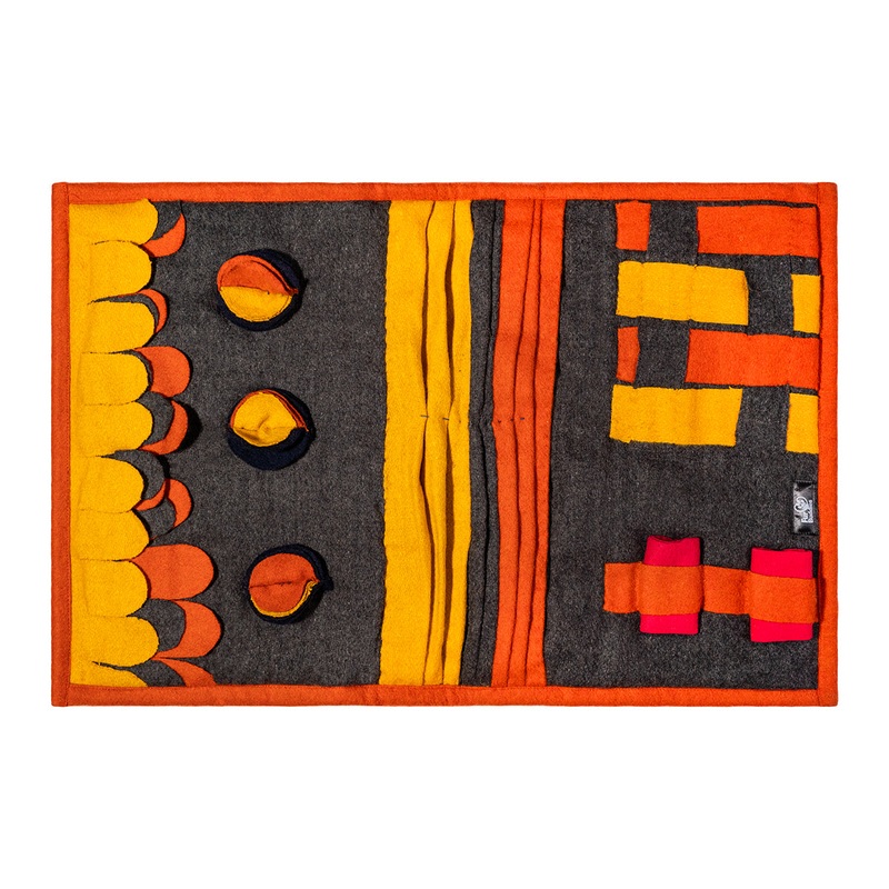 In the beginning, you must sit next to the mat, show your dog the treat and hide it in such a way that he/she can easily find it again. When your dog has discovered the treat, praise them immediately so that he/she can enjoy the game immediately. This way you can gradually increase the hiding game and use several treats at once. If your dog has understood the procedure well and is concentrated on the game, you can let them play with it alone, but we always recommend supervision.