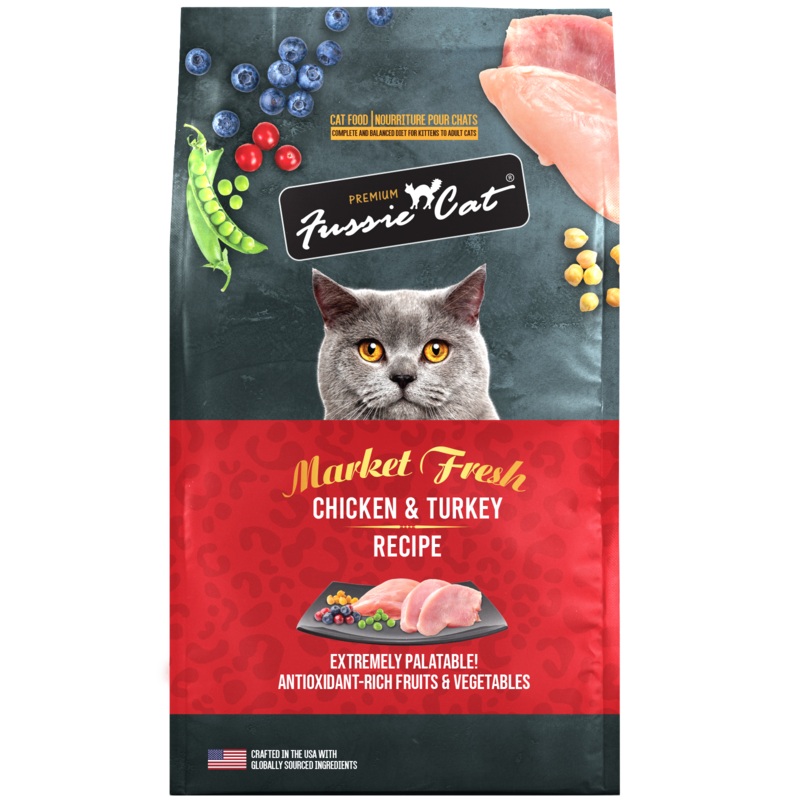 Chicken, Chicken Meal, Peas, Turkey Meal, Pea Flour, Chickpeas, Chicken Fat (Preserved With Mixed Tocopherols And Citric Acid), Natural Flavors, Flaxseed, Dicalcium Phosphate, Alfalfa Meal, Fructooligosaccharide, Minerals (Iron Proteinate, Zinc Proteinate, Copper Proteinate, Manganese Proteinate, Cobalt Proteinate), Potassium Chloride, Choline Chloride, DL Methionine, Vitamins (Vitamin A Acetate, Vitamin D3 Supplement, Vitamin E Supplement, Niacin, D-Calcium Pantothenate, Thiamine Mononitrate, Riboflavin Supplement, Pyridoxine Hydrochloride, Folic Acid, Biotin, Vitamin B12 Supplement), Taurine, Blueberries, Cranberries, Lactic Acid, Kelp Meal, Calcium Iodate, Sodium Selenite, Rosemary Extract.