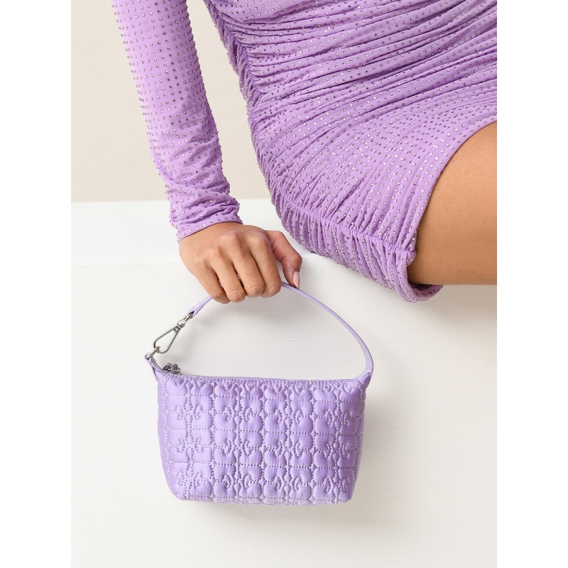 DESCRIPTION:A small, satin handbag with quilted logo stitching and a leopard lining.FEATURES:Zip ClosureQuilted StitchingSatin Fabrication100% Recycled PolyesterOne Size