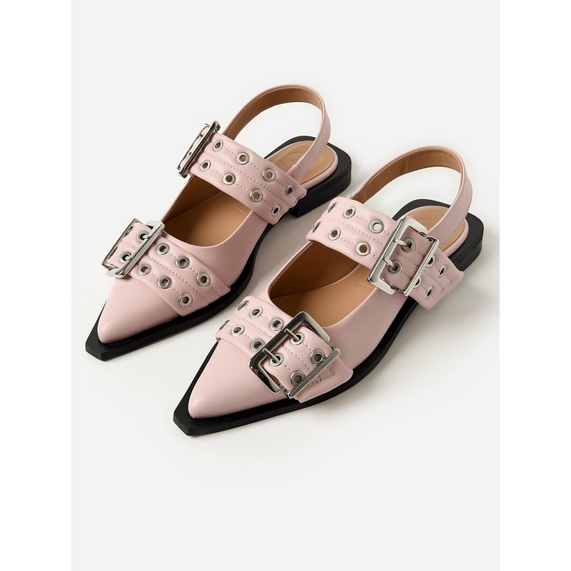 DESCRIPTION:A pair of faux leather slingback flats with an edgy buckle design.FEATURES:Adjustable StrapsPointed ToeHeel StrapUpper: Recycled BlendInsole: LeatherOutsole: RubberHeel Height: 0.7 in.