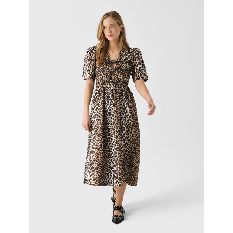 This eye-catching dress features a vibrant leopard print and a flattering tie-front design. It’s the perfect choice for a day out or a special occasion.