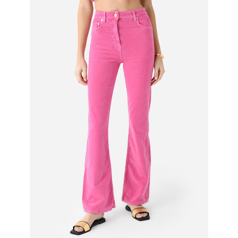 A high-waisted, five-pocket flare pant made from soft corduroy fabric with a hint of stretch.
