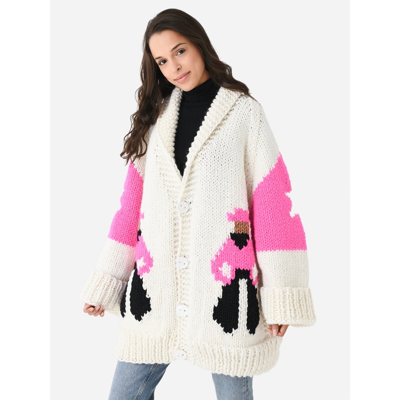 This oversized cardigan is hand-knit from ultra-soft Italian wool and features a custom western-inspired design.