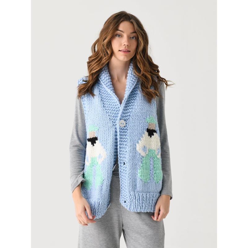 An ultra-soft sweater vest hand-knit from Italian wool with a custom cowboy design.