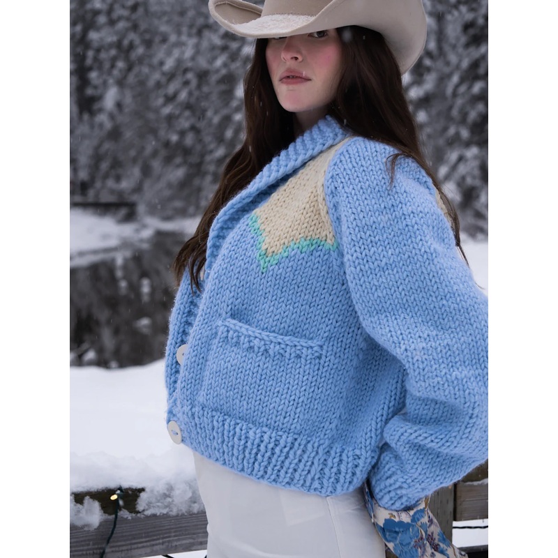 DESCRIPTION:A chunky knit cardigan made from soft, Italian wool and finished with a western-inspired yoke design.