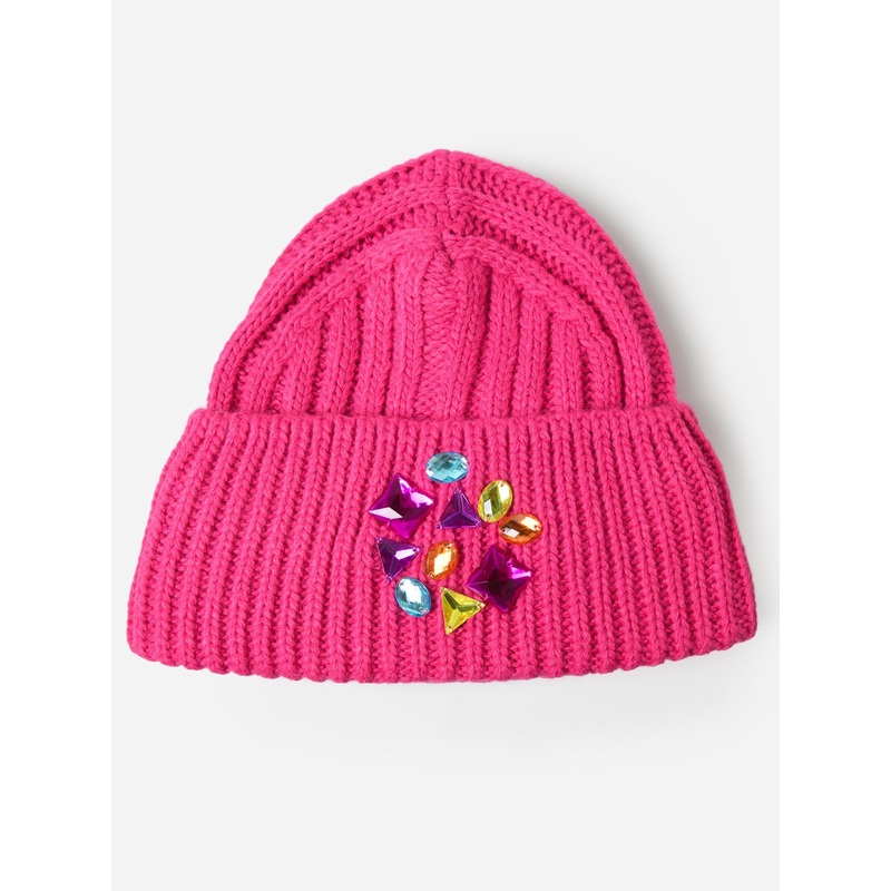 DESCRIPTION:A fleece-lined, ribbed beanie with strass stone details.