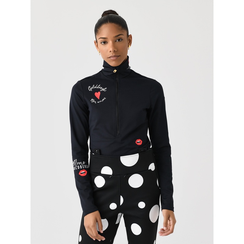 DESCRIPTION:A comfortable base layer top made from soft, anti-odor stretch fabric with custom Goldbergh graphics.FEATURES:Stand-Up CollarHalf-Zip ClosureCustom Graphics4-Way StretchQuick-DryingAntimicrobial Properties76% Recycled Polyester, 24% ElastaneSli