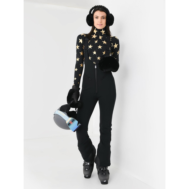 A windproof and water-repellent ski bib with comfortable four-way stretch and synthetic insulation.