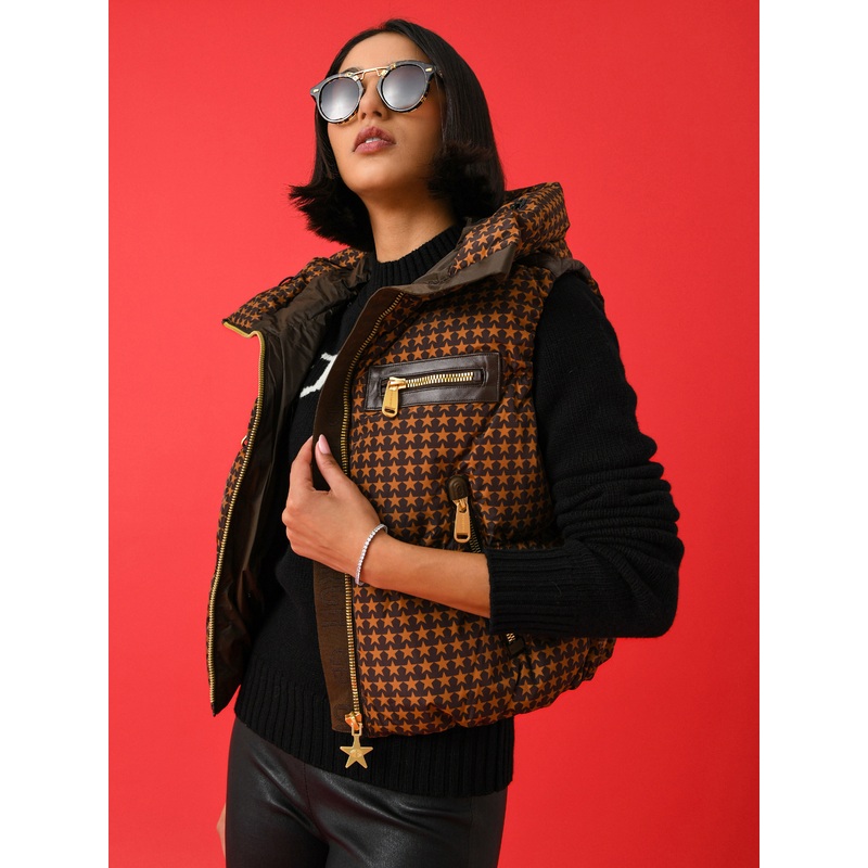DESCRIPTION:A down-insulted vest made from breathable recycled polyester with multiple pockets and a removable snow skirt.FEATURES:Fixed HoodZip PocketsInterior PocketsFull Zip ClosureDetachable Snow SkirtAll-Over Novelty PrintAntimicrobial PropertiesWater