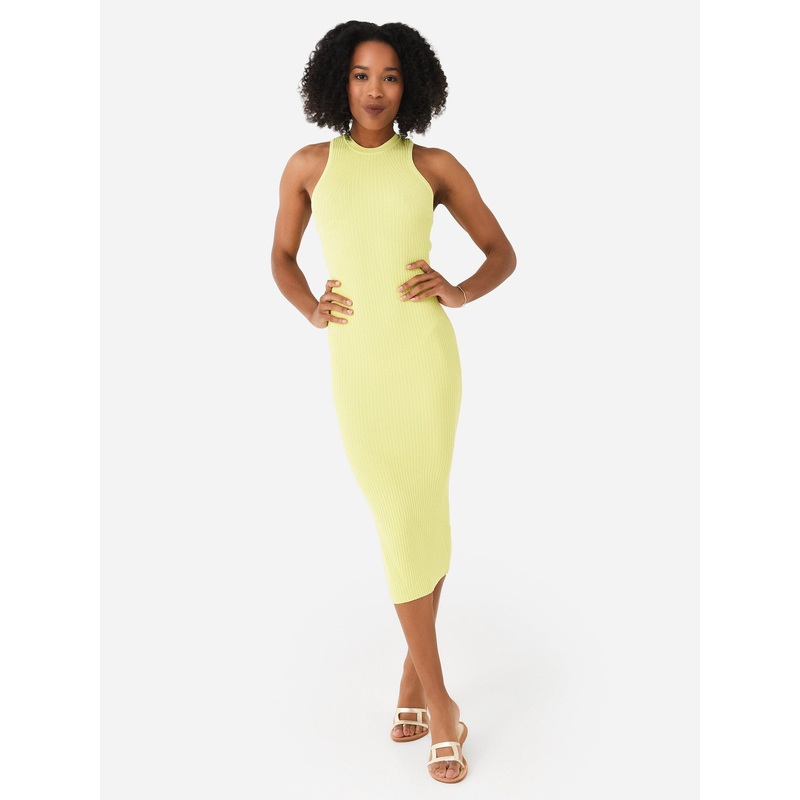 DESCRIPTION:Breathable tank-style dress with a subtle ribbed texture.FEATURES:Midi DressHigh NecklineSleevelessRacerback StyleMoisture-WickingStraight HemRibbed Fabrication72% Viscose, 28% PolyesterSlim FitModel is wearing size Small dress.Model's Measurem