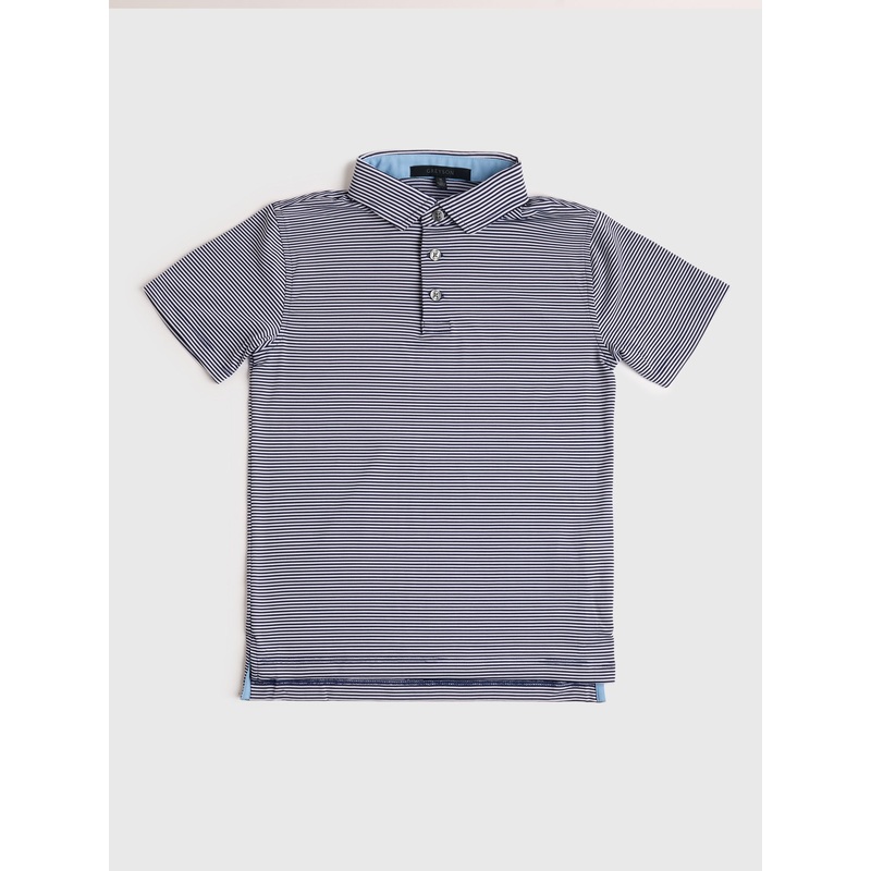 DESCRIPTION:This performance polo, made from breathable sateen fabric with a mini feeder stripe print, will keep him feeling fresh and looking sharp.FEATURES:Spread Collar3-Button PlacketAll-Over Stripe Print4-Way StretchQuick-DryingAntimicrobial Propertie