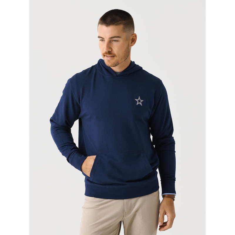 DESCRIPTION:A casual pullover hoodie made from a super soft Pima cotton blend and finished with a Dallas Cowboys logo.FEATURES:Attached HoodLeft Chest LogoKangaroo PocketBanded Cuffs and Hem4-Way StretchAntimicrobial PropertiesUVA/UVB ProtectionPerformance