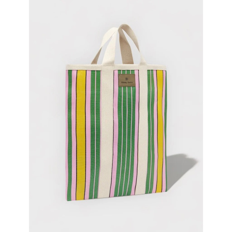 DESCRIPTION:A carryall-style tote bag made from recycled material with webbed cotton handles.FEATURES:Open TopAll-Over Novelty PrintRecycled NylonDimensions: 17.3 in. x 14.9 in.* Bag coloration may vary due to recycled materials.