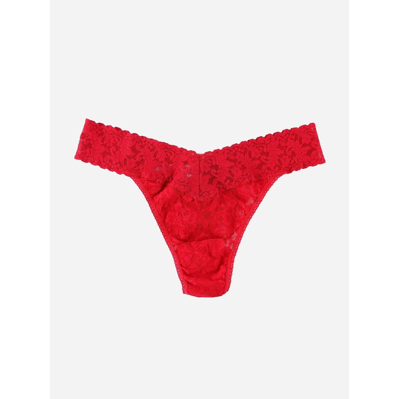 DESCRIPTION:Classic lace thong with an original rise.FEATURES:Original RiseV-WaistbandLace FabricationBody: 100% Nylon Gusset: 100% Supima CottonOne Size Fits Sizes 4-14 (Hips: 36 in. - 45 in.)