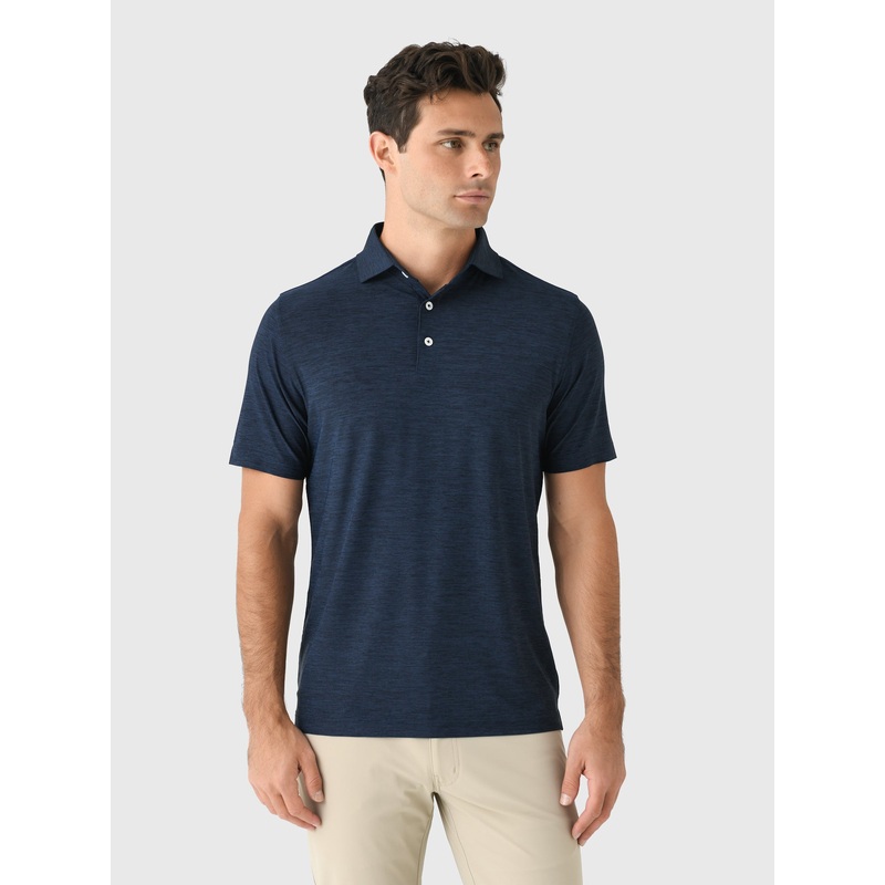DESCRIPTION:Crafted with Harleston's lightest material yet, the Wando performance polo uses featherweight melange fabric. It's the lightest, most layerable, and breathable piece for the links' most scorching days. Finished with authentic mother-of-pearl bu