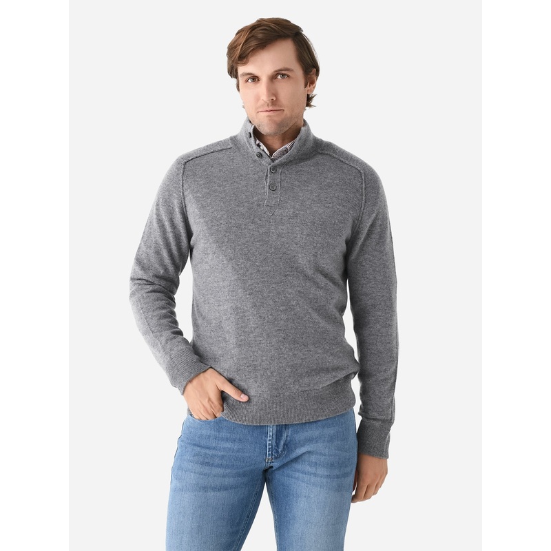 DESCRIPTION:Luxurious pullover made from wool and cashmere with a button placket.FEATURES:Stand-Up CollarButton PlacketRaglan SleeveKnit FabricationRibbed Neckline, Cuffs and Hem70% Wool, 30% CashmereClassic FitModel is wearing size Medium pullover.Model's
