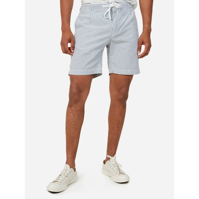 DESCRIPTION:A striped linen seersucker short with a mid-length silhouette.FEATURES:Elastic WaistbandAdjustable DrawstringButton, Zip-Fly ClosureBelt Loops4-Pocket StylingLonger InseamAll-Over Stripe Print100% LinenClassic Fit