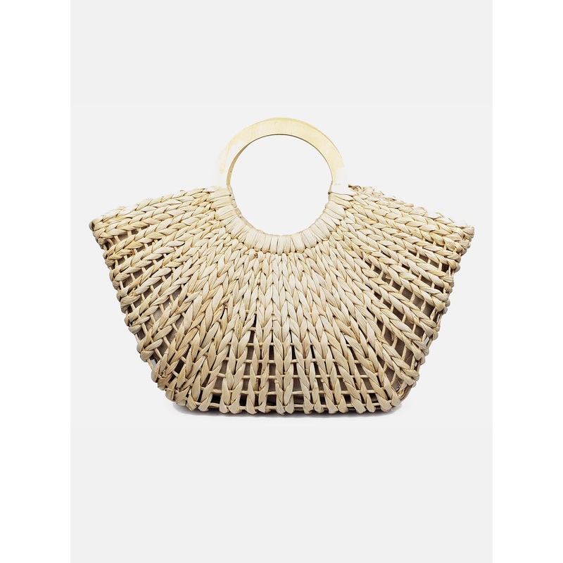 DESCRIPTION:Stash all of your goodies to go easily from the beach to the bar!FEATURES:Tote BagRound HandlesStraw MaterialWood HandlesMain: 100% Corn StrawDimensions: Body Height- 23cm; Open Length- 47 cm; Depth- 11cm