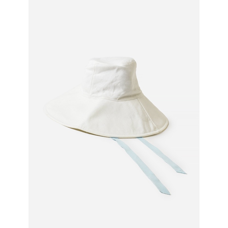 DESCRIPTION:A linen-cotton blend bucket hat with a large brim and a self-tie chinstrap.