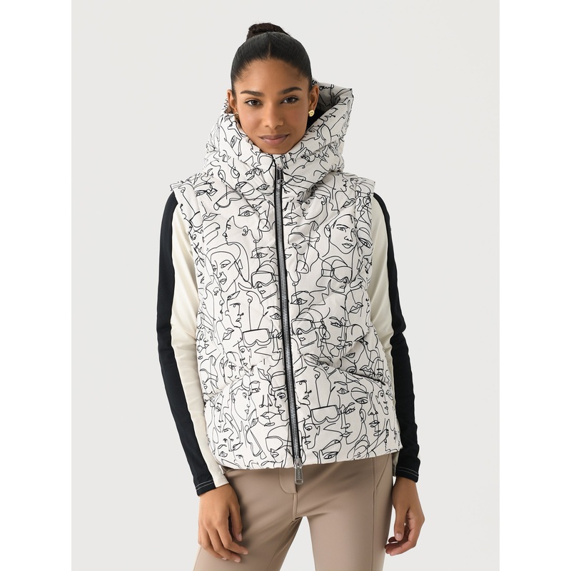 A fashionable puffer vest filled with a blend of duck down and synthetic insulation and finished with a custom print and a water-repellent exterior.