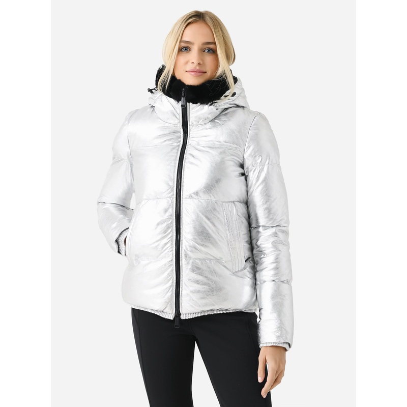 DESCRIPTION:Synthetic insulated leather jacket with a large shearling collar and adjustable hood.FEATURES:Fixed, Adjustable HoodShearling CollarHandwarmer PocketsSki Pass PocketElastic HemQuilted FabricationSynthetic Insulation100% LeatherClassic FitModel