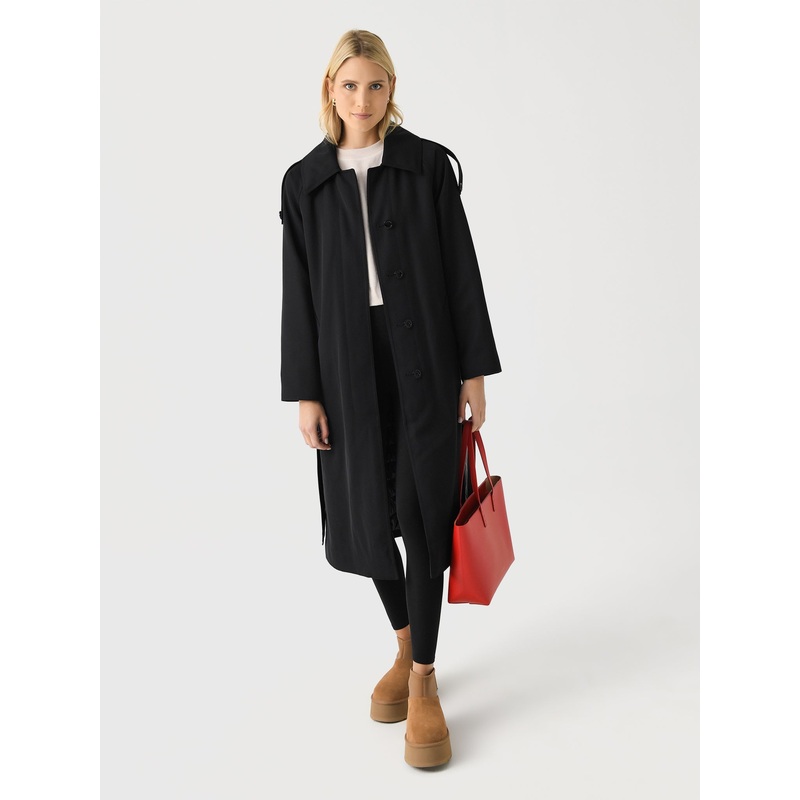 DESCRIPTION:A 2-in-1 reversible coat made from durable tear-resistant fabric with a water-repellent finish.FEATURES:Spread CollarButton ClosureSelf-Tie BeltSide PocketsLong SilhouetteFully ReversibleWater-Repellent FinishQuilted FabricationInsulation: 100%